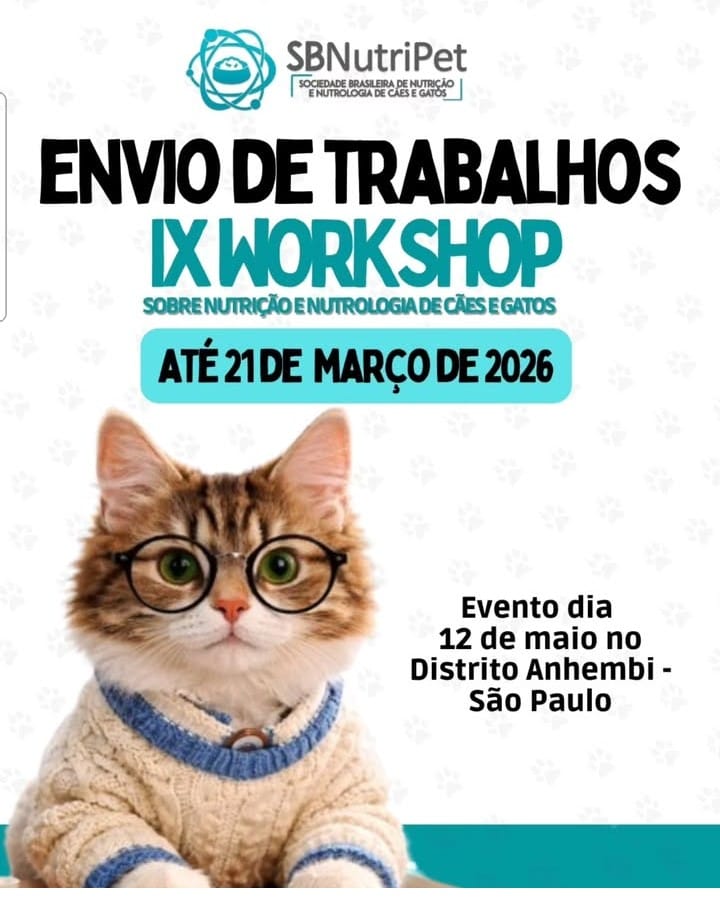Para o IX Workshop sobre Nutrição e Nutrologia de Cães e Gatos e para o XXV Congresso CBNA Pet, os descontos são válidos para pagamentos efetuados até 21 de março, mesma data limite para o envio dos trabalhos.